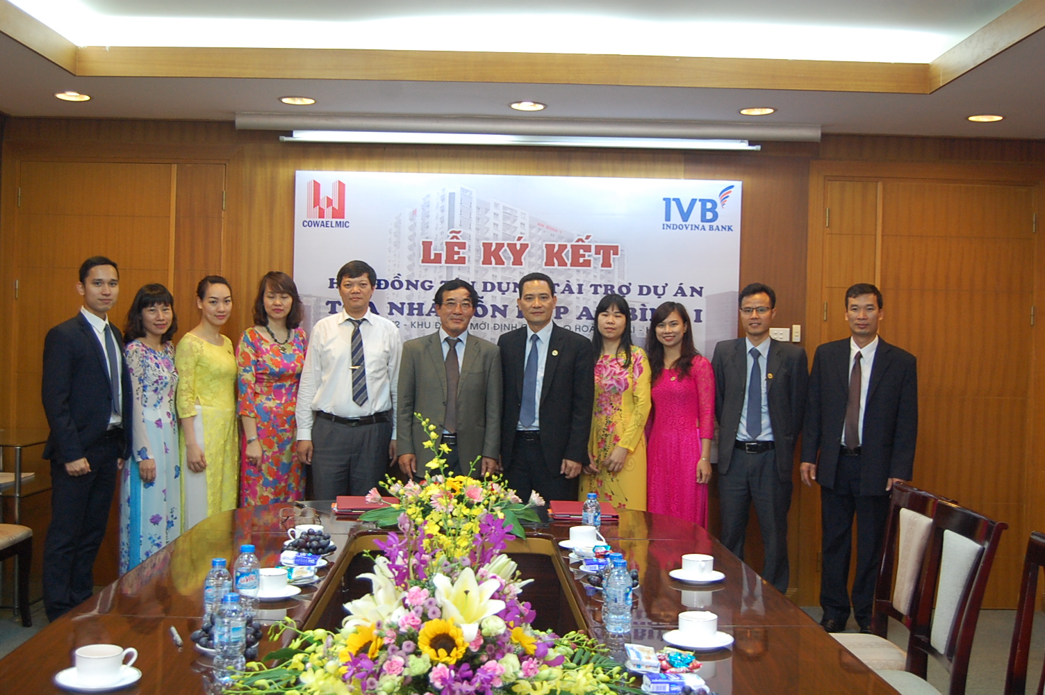 Lễ ký kết hợp đồng tín dụng tài trợ dự án "Tòa nhà hỗn hợp An Bình I" tại Lô A-CN2 Khu đô thị mới Định Công, phường Định Công, quận Hoàng Mai, Hà Nội giữa Ngân hàng Indovina - Chi nhánh Mỹ Đình và Công ty CP Lắp máy Điện nước và Xây dựng