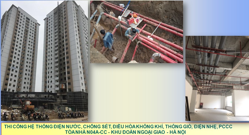 Thi công điện nước - điều hòa , thông gió, pccc, tòa nhà NO4A