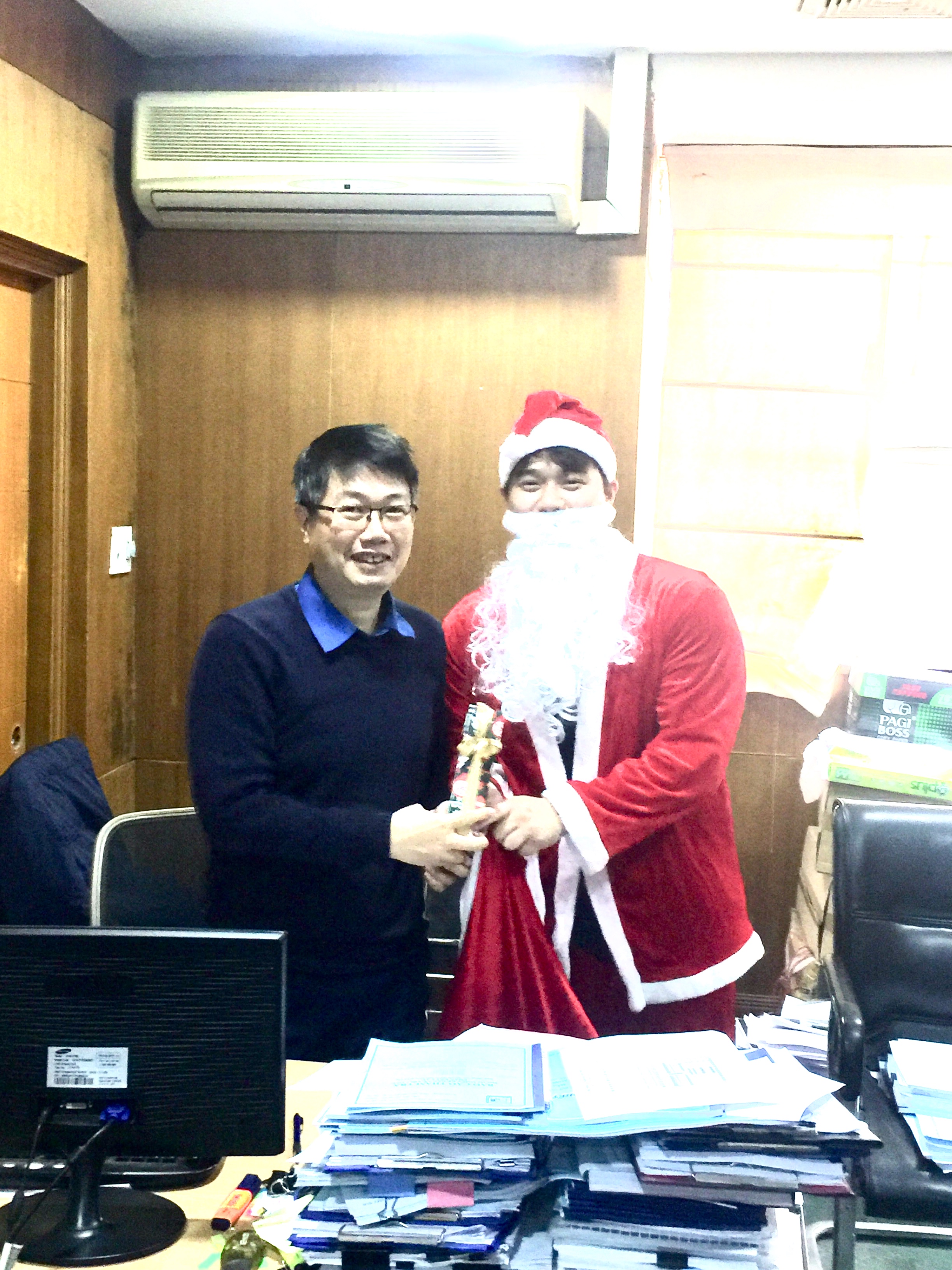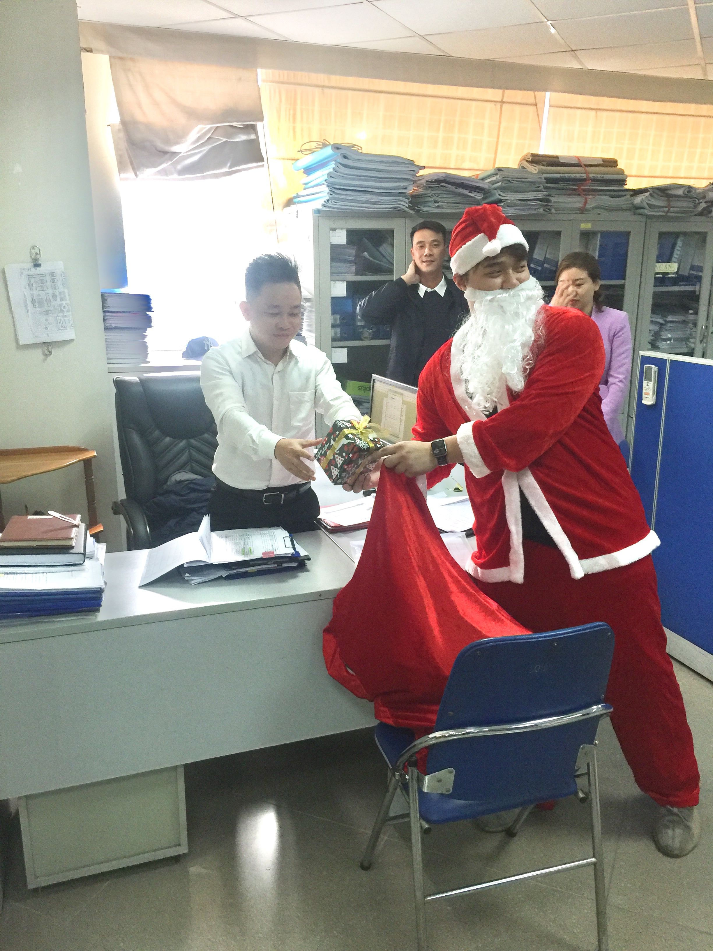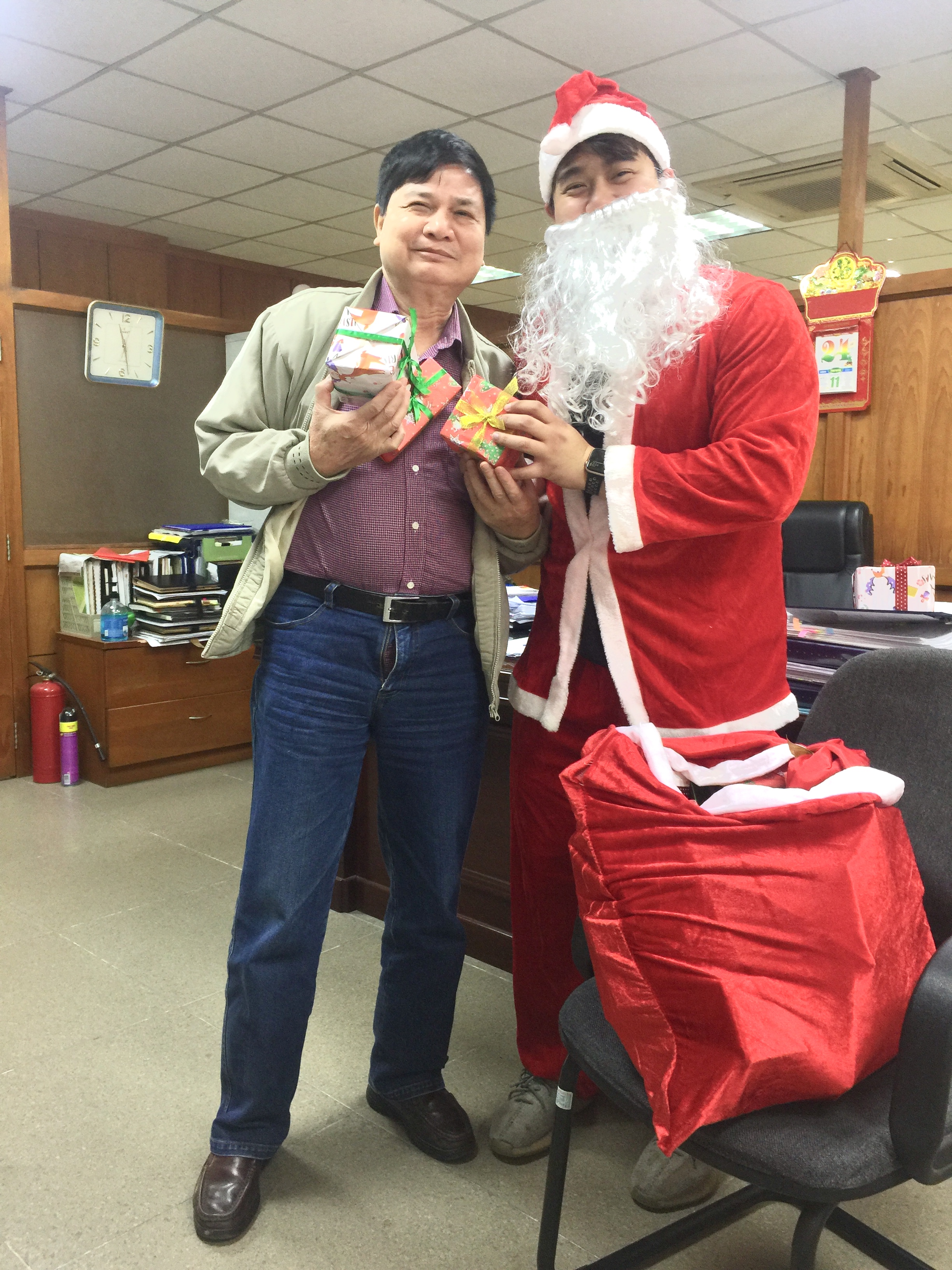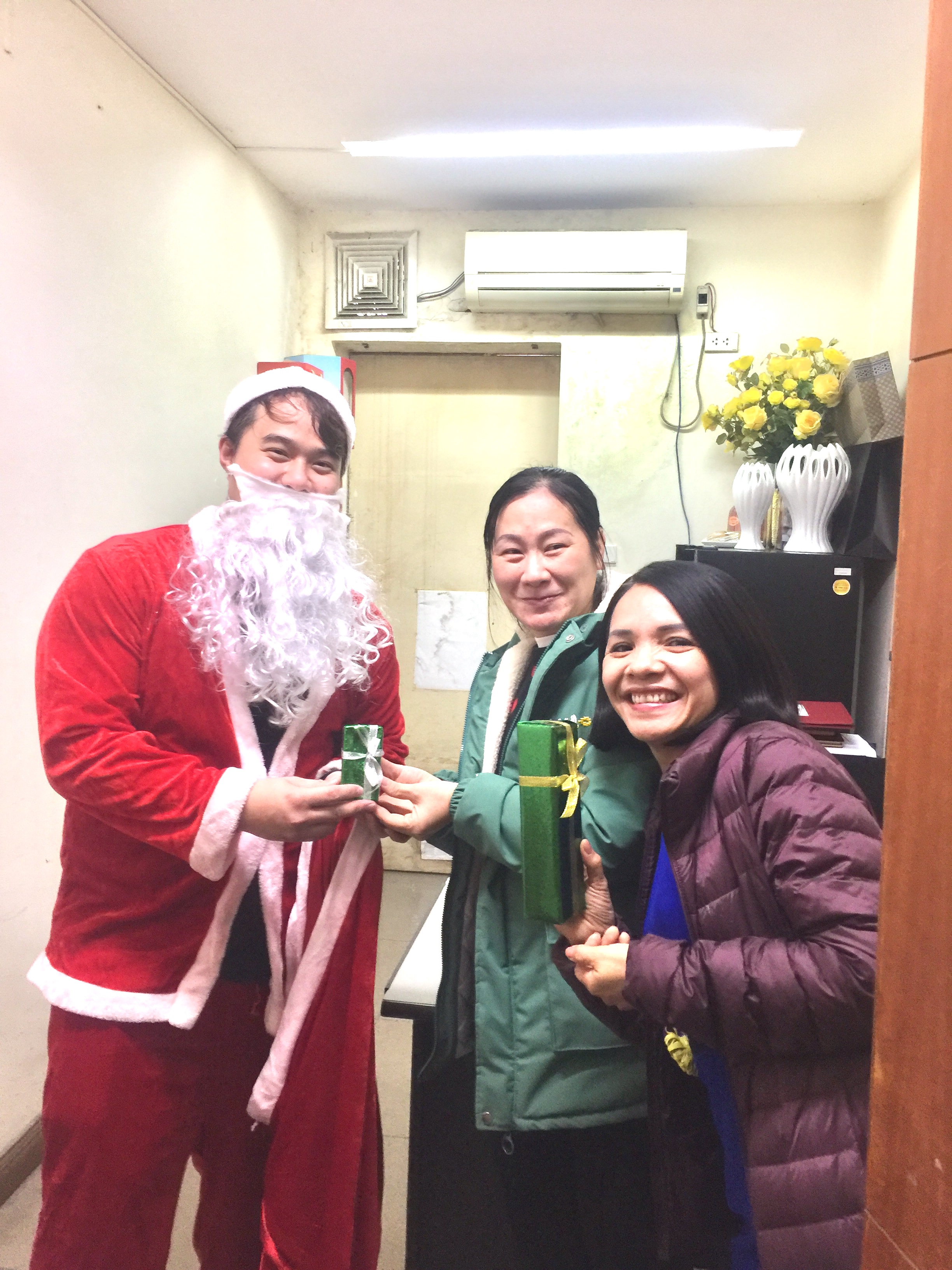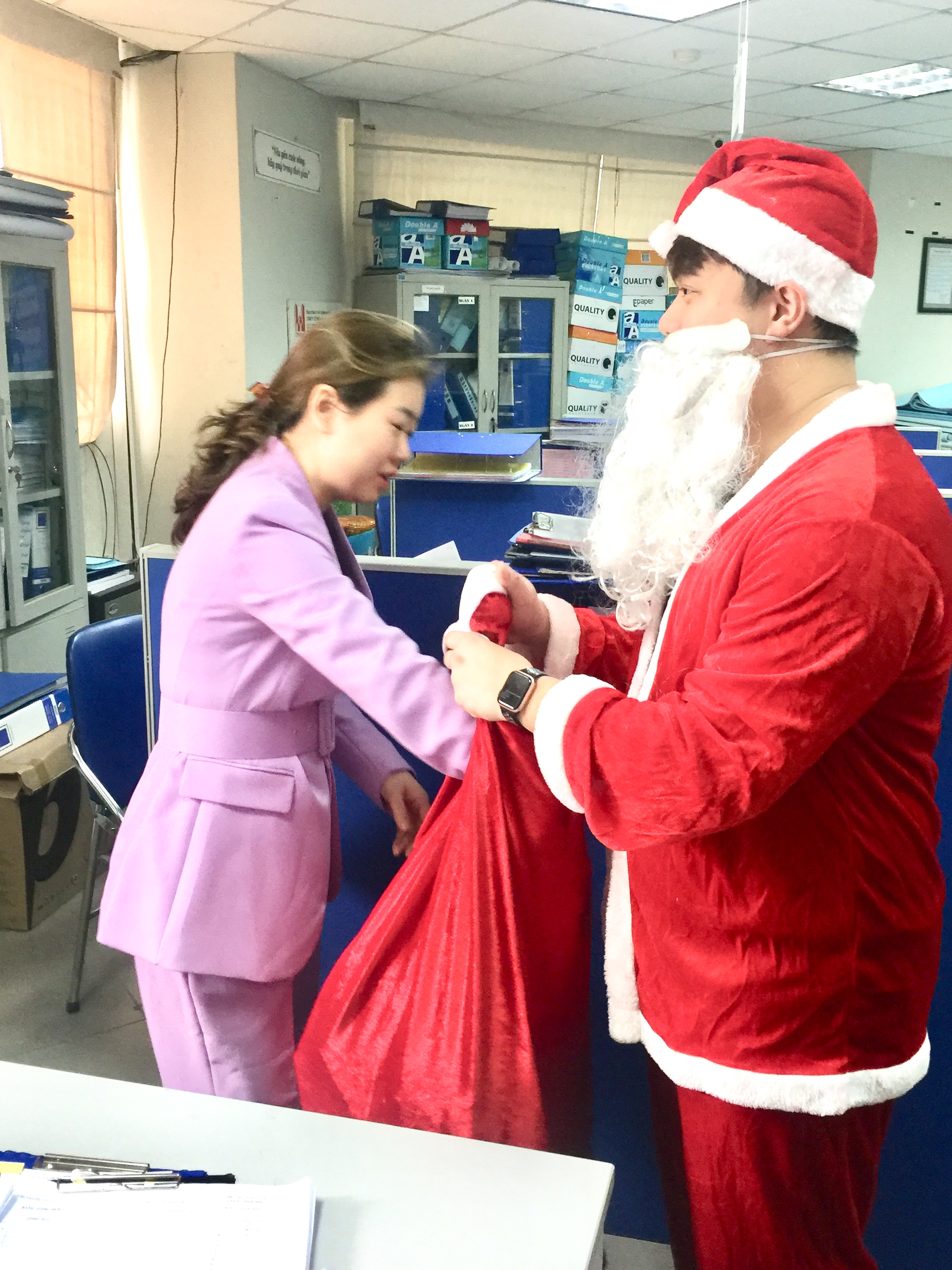 Sáng nay, 24-12-2020, ông già Noel đã đến trụ sở phát quà cho CBCNV công ty Cowaelmic. Nhưng có lẽ do dịch Covid nên bưu điện chưa kịp chuyển thư xin quà tới nên ông già Noel mang quà đến và phát theo phương thức ... TỰ CHỌN ! Dù thế nào một không khi vui vẻ và an lành tràn ngập tiếng cười.Cố lên, Noel 2021 túi qùa của ông già Noel hẳn to hơn !