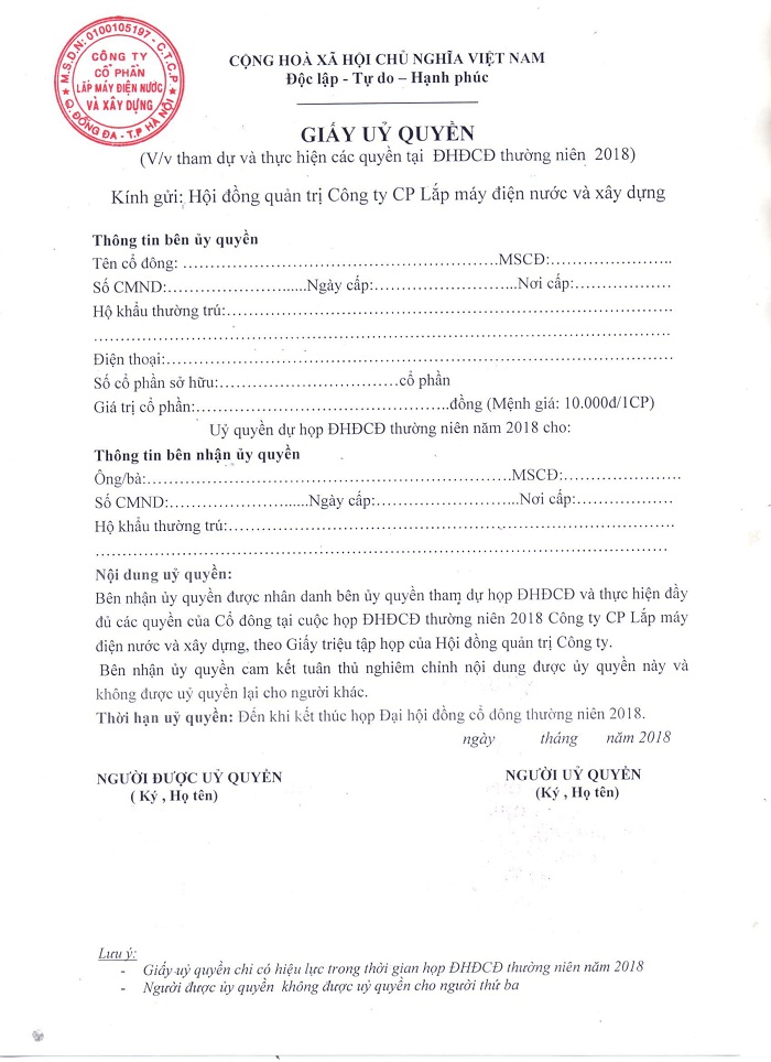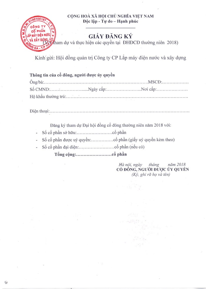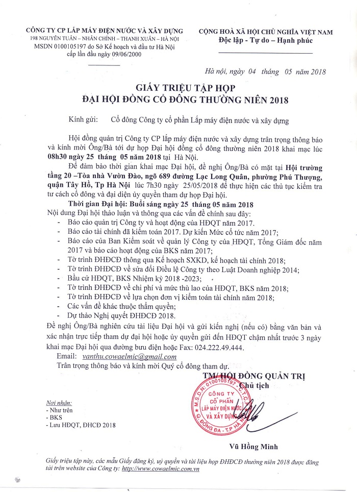 Giấy triệu tập ĐHCĐ thường niên 2018